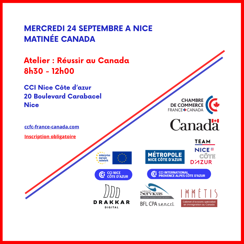 L'Ambassade du Canada, la Chambre de Commerce France-Canada, la CCI Nice Côte d'Azur et leurs partenaires,